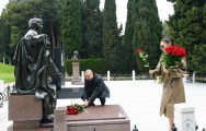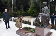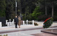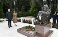 Sonra dövlətimizin başçısı və xanımı Ulu Öndərin ömür-gün yoldaşı, görkəmli oftalmoloq-alim, akademik Zərifə xanım Əliyevanın xatirəsini ehtiramla anaraq məzarı üzərinə gül dəstələri qoydular.