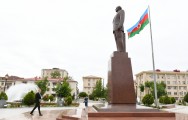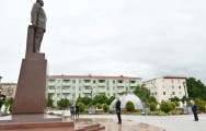 Prezident İlham Əliyev ümummilli lider Heydər Əliyevin Naxçıvan şəhərində ucaldılan abidəsini ziyarət edib