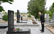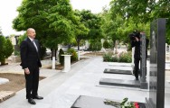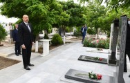 Dövlətimizin başçısı məzarların üzərinə gül dəstəsi qoyub.