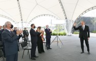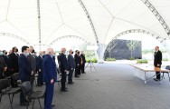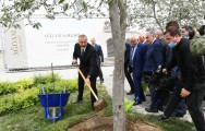 Sonra dövlətimizin başçısı şəhərin bərpasının təməl daşının qoyulması mərasimində iştirak edib, ağac əkib.