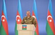 Aprel döyüşləri Ermənistana dərs olmadı. Ondan iki il sonra Naxçıvan əməliyyatı nəticəsində biz böyük ərazini götürmüşdük və gücümüzü, peşəkarlığımızı bir daha göstərmişdik. O da dərs olmadı. Nəhayət, İkinci Qarabağ müharibəsi elə dərs oldu ki, onlar bu dərsi əbədi yadda saxlayacaqlar. İkinci Qarabağ müharibəsi bizim şanlı tariximizdir. Bu tarix Azərbaycan xalqının ürəyində əbədi yaşayacaq. Bu, ədalətin təntənəsi idi. Bu, qürurun təntənəsi idi, milli ləyaqətin təntənəsi idi, Azərbaycan xalqının əyilməz ruhunun təntənəsi idi. Biz bütün gücümüzü səfərbər edib bu müharibədə Qələbə qazanaraq düşməni torpaqlarımızdan qovduq. Düşməni elə rəzil vəziyyətə qoyduq ki, onlar bizim qabağımızda diz çökdülər, ağ bayraq qaldırdılar və məcbur olub kapitulyasiya aktına imza atdılar. Halbuki, müharibə dövründə mən dəfələrlə öz çıxışlarımda və müsahibələrimdə deyirdim ki, biz dayanmağa hazırıq. Mən Prezident kimi bəyan edirəm, Ermənistan rəhbəri şəxsən bizə tarix versin, nə vaxt bizim torpaqlarımızdan erməni hərbi birləşmələri çıxır, o tarixi bizə versin və biz müharibəni dayandırırıq. Ancaq Ermənistan tərəfi yenə də bu şansı itirdi. Müharibə nəticəsində Ermənistan ordusu məhv edilib. Mən bu rəqəmləri səsləndirmişdim, siz yaxşı bilirsiniz. Siz Ermənistan ordusunu məhv etmisiniz, Ermənistan ordusu yoxdur -336 tank məhv edilib, ya da ki, qənimət kimi götürülüb. Səkkiz S300 qurğusu məhv edilib, onların hava hücumuna qarşı digər qurğuları məhv edilib, artilleriya qurğuları. Yəni, Ermənistan ordusu yoxdur. Müharibə dövründə, - artıq bu da sirr deyil, - vasitəçilər Ermənistana xəbər göndərmişdilər ki, dayanmaq lazımdır, tarix verin Azərbaycana. Ancaq onlar bundan da imtina etdilər. Biz Şuşanı işğalçılardan azad edəndən sonra məcbur olub noyabrın 9-dan 10-na keçən gecə kapitulyasiya aktına imza atdılar.