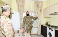 Daha sonra Prezident İlham Əliyev Hərbi Hava Qüvvələrinin hərbi qulluqçularının ailələri üçün nəzərdə tutulmuş yeni xidməti mənzillərdə yaradılan şəraitlə tanış oldu.