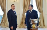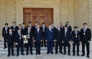 Azərbaycan Prezidenti İlham Əliyev yunan-Roma güləşi üzrə dünya kuboku yarışlarında qalib gəlmiş milli komandamızın üzvlərini qəbul edib
