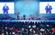 Heydər Əliyev adına Arenada təşkil olunan tədbirdə əvvəlcə Avropa Oyunları haqqında videoçarx nümayiş olunub.