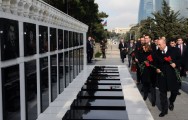 Sonra Türkiyənin xarici işlər naziri Şəhidlər xiyabanında şəhid türk əsgərlərinin xatirəsinə ucaldılmış abidəni ziyarət edərək önünə əklil qoyub, şəhidlik kitabəsinin üstünə gül dəstələri düzüb, xatirə kitabına ürək sözlərini yazıb.