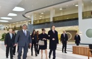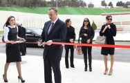 Prezident İlham Əliyev Mərkəzin rəmzi açılışını bildirən lenti kəsdi.