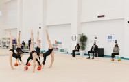 Prezident İlham Əliyev, birinci xanım Mehriban Əliyeva və qızları Leyla Əliyeva gimnastların məşqlərinə baxdılar və xatirə şəkli çəkdirdilər.