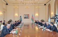 - Hörmətli cənab Prezident, nümayəndə heyətinin üzvləri. Sizi Azərbaycanda bir daha salamlamaq istərdim. Əminəm ki, Sizin səfəriniz ikitərəfli əlaqələrimizin gücləndirilməsi baxımından mühüm əhəmiyyət kəsb edəcək. Ölkələrimiz arasındakı qardaşlıq əlaqələri iki müsəlman ölkəsinin əməkdaşlığının yaxşı nümunəsidir. Əminəm ki, səfərinizin çox yaxşı nəticələri olacaq.