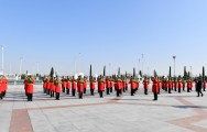 Azərbaycanın və Türkmənistanın dövlət bayraqlarının dalğalandığı Aşqabad Beynəlxalq Hava Limanında dövlətimizin başçısının şərəfinə fəxri qarovul dəstəsi düzülmüşdü.