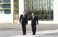 Bakıdan buraya uçanda gözəl panoram, əkilmiş tarlalar, abad məhəllələr, qəsəbələr gördüm. Əlbəttə, Aşqabad burada olanları ilk dəqiqələrdən öz gözəlliyi və möhtəşəmliyi ilə heyran edir. Bildiyiniz kimi, mən dəfələrlə Sizin ölkənizdə olmuşam və Sizin rəhbərliyinizlə həm ölkənizin sosial-iqtisadi inkişafı, həm də abadlıq, şəhər infrastrukturunun yaradılması işində qazanılmış nailiyyətlərə heyran olduğumu həmişə bildirmişəm. Yadımdadır, ötən görüşümüzdə Sizin idman şəhərciyinizlə, bəlkə də idman şəhəri ilə tanış oldum. O vaxt Siz Asiadanı uğurla keçirdiniz. Bu, onu göstərir ki, dövlət öz gücünə, ənənələrinə, türkmən xalqının istedadına əsaslanaraq inamla irəliləyir. Bu, bizi ürəkdən sevindirir.
