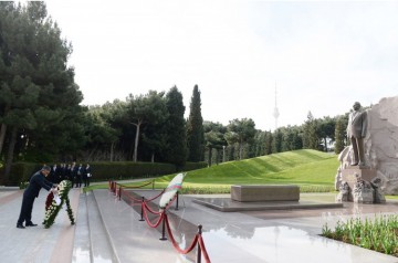 Sonra Şəhidlər xiyabanına gələn qonaqlar ölkəmizin azadlığı və suverenliyi uğrunda mübarizədə canlarından keçmiş qəhrəman Vətən övladlarının xatirəsini yad edib, “Əbədi məşəl” abidəsinin önünə əklil qoyublar.