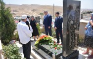 Mərasim iştirakçıları şəhid Əli Əliyevin Qobu qəsəbəsindəki məzarını ziyarət edib, ruhuna dualar oxuyublar.