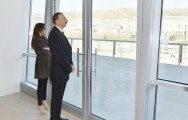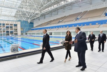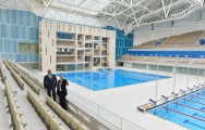 Dövlətimizin başçısı yarışların keçiriləcəyi əsas hovuza baxdı. Uzunluğu 50, eni 25, dərinliyi isə 2,5 metr olan hovuz su idmanının müxtəlif növləri üzrə yerli və beynəlxalq səviyyəli yarışlar üçün nəzərdə tutulub.