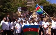 İsrailin Azərbaycan icmasının nümayəndələri “Justice for Khojaly” sözləri yazılmış futbolkalarda Təl-Əvivin Xayarkon küçəsindən keçərək, sadə insanların diqqətini erməni faşistlərinin Xocalı şəhərində dinc azərbaycanlı əhaliyə qarşı törədikləri vəhşiliklərə və cinayətlərə cəlb ediblər.