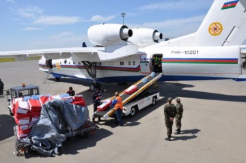 FHN-dən bildiriblər ki, nazirliyə məxsus “BE-200ÇS” tipli təyyarə ilə yola salınan humanitar yardıma 1 tona yaxın müxtəlif dərman və tibbi ləvazimatlar, xeyli sayda çadır, ədyal və qablaşdırılmış içməli su daxildir.
