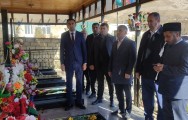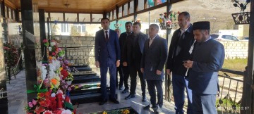 Mərasim iştirakçıları şəhidin məzarını ziyarət edib, üzərinə tər güllər düzüblər.