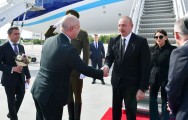Prezident İlham Əliyevi və birinci xanım Mehriban Əliyevanı Litvanın ətraf mühit naziri Simonas Gentvilas və digər rəsmi şəxslər qarşıladılar.