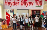 Məktəbin şagirdləri ulu öndər Heydər Əliyevə həsr olunmuş bədii kompozisiya nümayiş etdirib, şeirlər söyləyiblər.