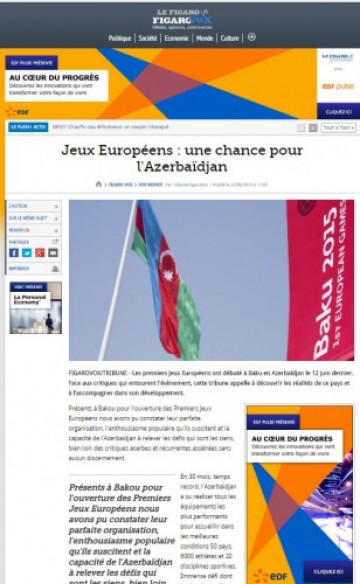 “Le Figaro” qəzeti xəbər verir ki, bəyanatda birinci Avropa Oyunlarının açılış mərasimində Olimpiadanın qonaqpərvərlik və qardaşlıq dəyərlərinin nümayiş etdirildiyi bildirilir.