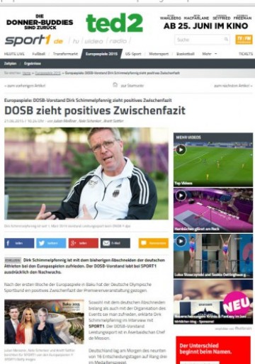 Məqalədə Almaniya Olimpiya Komitəsi idarə heyətinin üzvü, yarışlarda iştirak edən Almaniya nümayəndə heyətinin rəhbəri Dirk Şimmelpfenniq ilə müsahibə də yer alıb. D.Şimmelpfenniq müsahibəsində həm Almaniya millisinin Avropa Oyunlarında əldə etdiyi uğurlardan, həm də yarışların təşkilindən məmnun olduğunu bildirib. O, Avropa Oyunları kimi böyük idman tədbirinin təşkilindən heyrətləndiyini deyib: “Həm yarışların keçirildiyi yerlər, həm Atletlər Kəndi, həm də nəqliyyat tamamilə Olimpiya standartlarına uyğundur”.