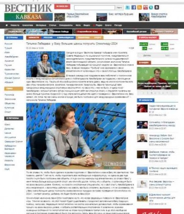 Rusiya Federasiyası Federasiya Şurasının sosial-siyasət komitəsinin üzvü, Olimpiya çempionu Tatyana Lebedeva Azərbaycanda keçirilən Avropa Oyunlarının təşkili və Bakı haqqında təəssüratlarını “Vestnik Kavkaza” portalı ilə bölüşüb.