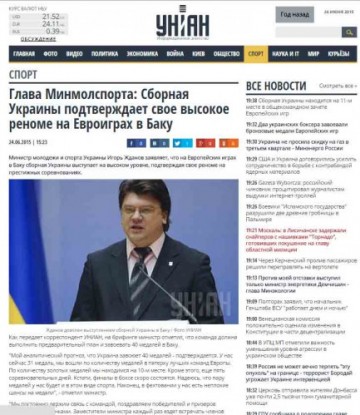 Ukraynanın gənclər və idman naziri İqor Jdanov Bakıda keçirilən birinci Avropa Oyunlarının gedişinə münasibət bildirib.