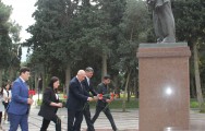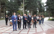 Əvvəlcə Ulu Öndərin abidəsi ziyarət olunub, abidənin önünə gül dəstələri düzülüb.