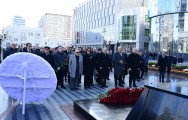 Abidənin önünə əklil və gül dəstələri qoyulub, bəşəriyyətə qarşı dəhşətli cinayət olan soyqırımı qurbanlarının əziz xatirəsi ehtiramla yad olunub.
