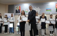 Mükafatlandırma mərasimindən sonra mərkəzin şagirdləri tərəfindən vətənpərvərlik mövzusunda şeirlər, mahnılar və rəqslərdən ibarət bədii proqram təqdim olunub.