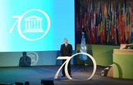 Siz digər dinlərə öz dininizə rəğbət bəslədiyiniz kimi hörmət etməlisiniz. Siz qonşunuzdan milliyyətini, kilsədə, sinaqoqda və ya məsciddə ibadət etməsini soruşmadan onunla yanaşı yaşamalısınız. Yalnız bu halda biz potensial riskləri azalda bilərik. Biz artan gərginlikləri aradan qaldıra bilərik. Əfsuslar olsun ki, dünyada vəziyyət bizim istədiyimiz istiqamətə doğru dəyişmir. Biz səylərimizi birləşdirməliyik. Biz Azərbaycanda qitələri, sivilizasiyaları bir araya gətirmək üçün üzərimizə düşən vəzifəni yerinə yetiririk. Konfransın sədrinin qeyd etdiyi kimi, gələn il biz xüsusilə multikulturalizm, dini və etnik tolerantlıq məsələlərinin müzakirəsini nəzərdə tutan BMT-nin Sivilizasiyaların Alyansının qlobal forumuna ev sahibliyi edəcəyik. Bu məsələdə UNESCO-nun nadir rolunu vurğulamaq istəyirəm. Biz UNESCO-nun fəaliyyətini və Baş direktoru xanım İrina Bokovanın güclü rəhbərliyini dəstəkləyirik. Azərbaycan UNESCO-ya şərəfli fəaliyyətində dəstək olmaq üçün əlindən gələni edəcəkdir. Bir daha sizi salamlamaq, sizə hörmətimi ifadə etmək və UNESCO-nun 70-ci ildönümü münasibətilə sizi təbrik etmək istəyirəm. Çox sağ olun.