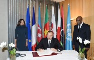 Əvvəlcə Prezident İlham Əliyev UNESCO-nun qonaq kitabına ürək sözlərini yazdı.