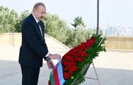 Dövlətimizin başçısı “Əbədi məşəl” abidəsinin önünə əklil qoydu.