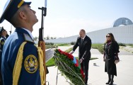 Prezident İlham Əliyev Zəfər abidəsinin önünə əklil qoydu, şəhidlərin xatirəsini ehtiramla andı.
