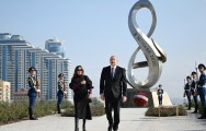 Birinci xanım Mehriban Əliyeva abidənin önünə gül dəstələri düzdü.