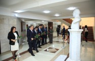Əvvəlcə tədbir iştirakçıları Ümummilli Lider Heydər Əliyevin YAP Gəncə şəhər təşkilatının inzibati binasında yerləşən büstünü ziyarət edərək önünə gül dəstələri düzüblər.