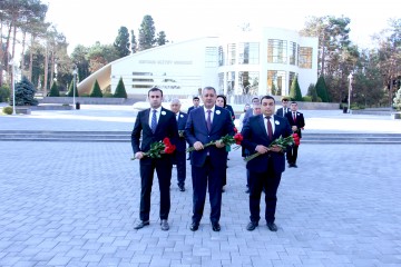 Əvvəlcə Ümummilli Lider Heydər Əliyevin abidəsi ziyarət edilib, abidə önünə gül dəstələri düzülüb.