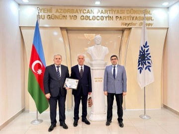 Görüşün sonunda Tofiq Mustafayevə partiyanın ictimai-siyasi həyatında fəal iştirakına görə fəxri fərman verilib.