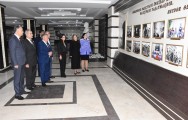 Sonra Heydər Əliyev Mərkəzinin foyesində Ulu Öndər Heydər Əliyevin zəngin siyasi və dövlətçilik fəaliyyətindən bəhs edən kitab sərgisi, eləcə də 7 saylı Uşaq-Gənclər İnkişaf Mərkəzinin fəallarının əl işlərindən ibarət sərgi ilə tanışlıq olub.