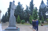 Əvvəlcə Ulu Öndər Heydər Əliyevin abidəsi önünə gül dəstələri qoyulub, dahi şəxsiyyətin xatirəsi ehtiramla yad olunub.
