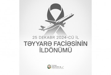 Azərbaycan Prezidenti İlham Əliyev “Azərbaycan Hava Yolları” Qapalı Səhmdar Cəmiyyətinə məxsus “Embraer 190” təyyarəsinin qəzaya uğramasının birinci ildönümü ilə bağlı sosial media hesablarında paylaşım edib.