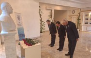 Əvvəlcə tədbir iştirakçıları Ümummilli Lider Heydər Əliyevin büstünün önünə gül dəstələri düzüblər.