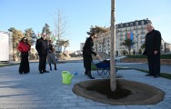 Prezident İlham Əliyev, birinci xanım Mehriban Əliyeva və qızları Palıd meydanı parkında ilk palıd ağacını əkdilər.