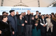 Prezident İlham Əliyev: Artıq üç gündür ki, Ağdərə rayonunun dörd kəndinə yerləşmisiniz. Bu münasibətlə sizi təbrik edirəm.