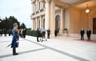 Fəxri qarovul dəstəsi hərbi marşın sədaları altında Azərbaycan Prezidenti İlham Əliyevin və Amerika Birləşmiş Ştatlarının Vitse-prezidenti Cey. Di. Vensin qarşısından keçdi.
