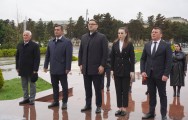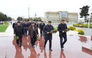 Əvvəlcə Ümummilli Lider Heydər Əliyevin abidəsi ziyarət olunub, dahi şəxsiyyətin xatirəsi anılıb.