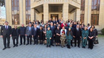 Daha sonra Qazax şəhərinin mərkəzində yerləşən Şəhidlər xiyabanı ziyarət olunub, Abidə kompleksi önünə gül dəstələri düzülüb.