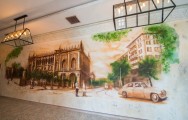 Bakı Media Mərkəzinin prezidenti Arzu Əliyeva və rəssam Rəşad Mehdiyev əsərin üzərindəki ağ örtüyü götürdülər.