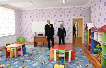 Prezident İlham Əliyev Heydər Əliyev Fondunun təşəbbüsü ilə Ağcabədidə inşa edilmiş körpələr evi–uşaq bağçasının açılışında iştirak edib