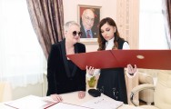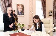 Birinci vitse-prezident Mehriban Əliyeva Yaradıcılıq Mərkəzinin xatirə kitabına ürək sözlərini yazdı.