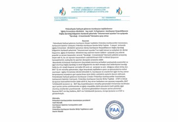Diasporla İş üzrə Dövlət Komitəsindən verilən məlumata görə, Avropa Azərbaycanlıları Konqresinin və Finlandiyada fəaliyyət göstərən Azərbaycan təşkilatlarının bəyanatında Ermənistan rəhbərliyindən BMT-nin 4 qətnaməsinin, digər beynəlxalq təşkilatların qərarlarının qeyd-şərtsiz və dərhal yerinə yetirilməsi tələb olunur.